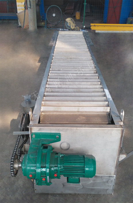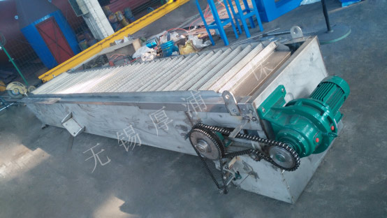 用于傳動的牽引鏈采用不銹鋼制造,鏈具有足夠的斷面尺寸,牽引鏈破斷強度不小于其它大牽引力的5倍。傳動用的牽引鏈輪及導向裝置(非鏈輪),分別置于機架兩側(cè)的上部和下部,水下導向裝置的形式,在結(jié)構(gòu)上有可靠的設(shè)施防止柵渣等污物的纏繞。導向裝置是非鏈輪機構(gòu)。